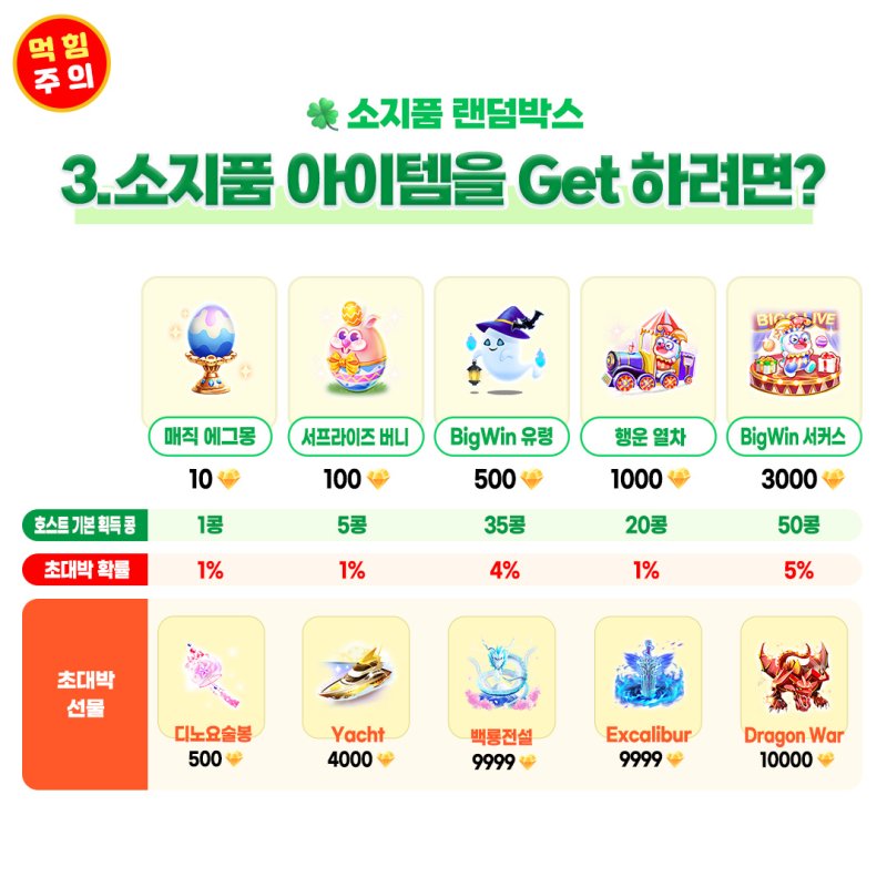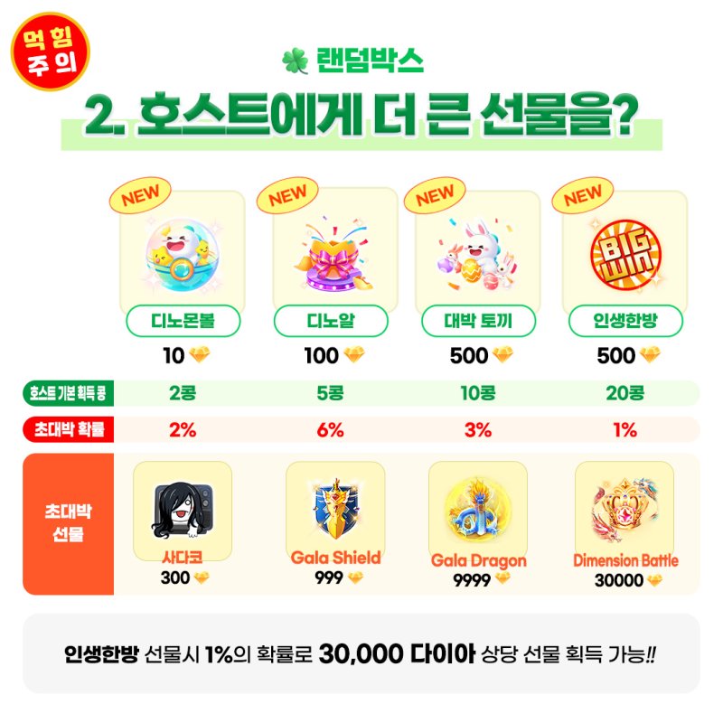 3000 다이아 이상 아이템 나오는 확률: 45%
